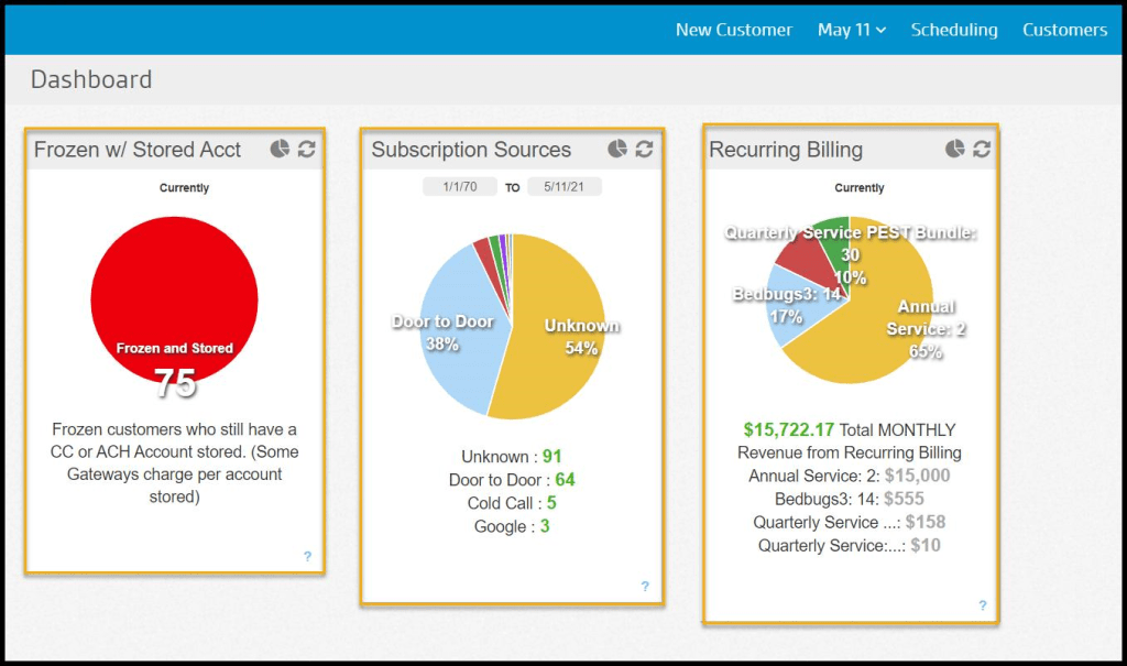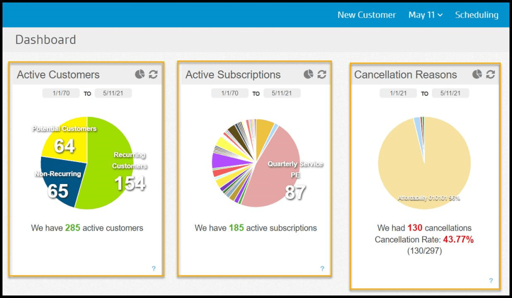 - Active Recurring Customers: These are the user’s moneymakers. These customers have an active account, are set up on at least one recurring service schedule, and have already received at least one service.