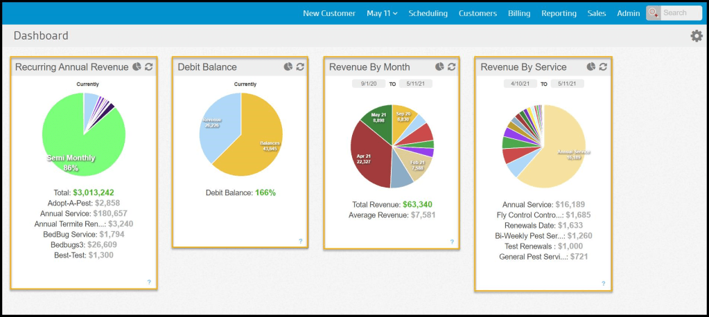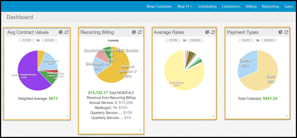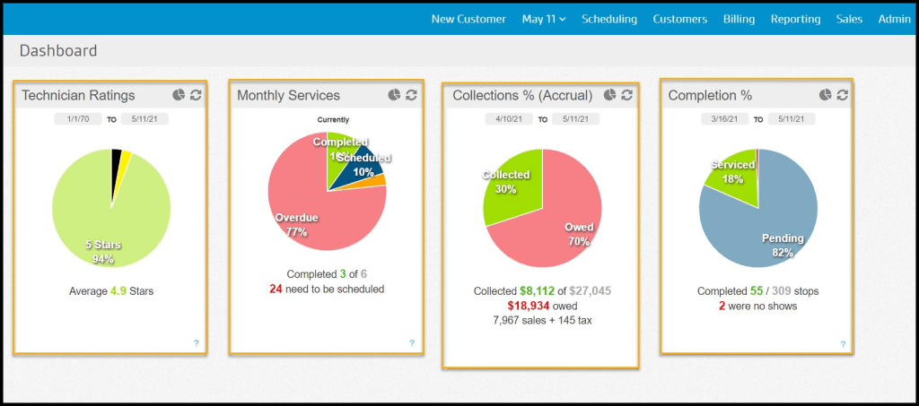 The FieldRoutes Operations Dashboard provides a valuable overview of the most important business areas.