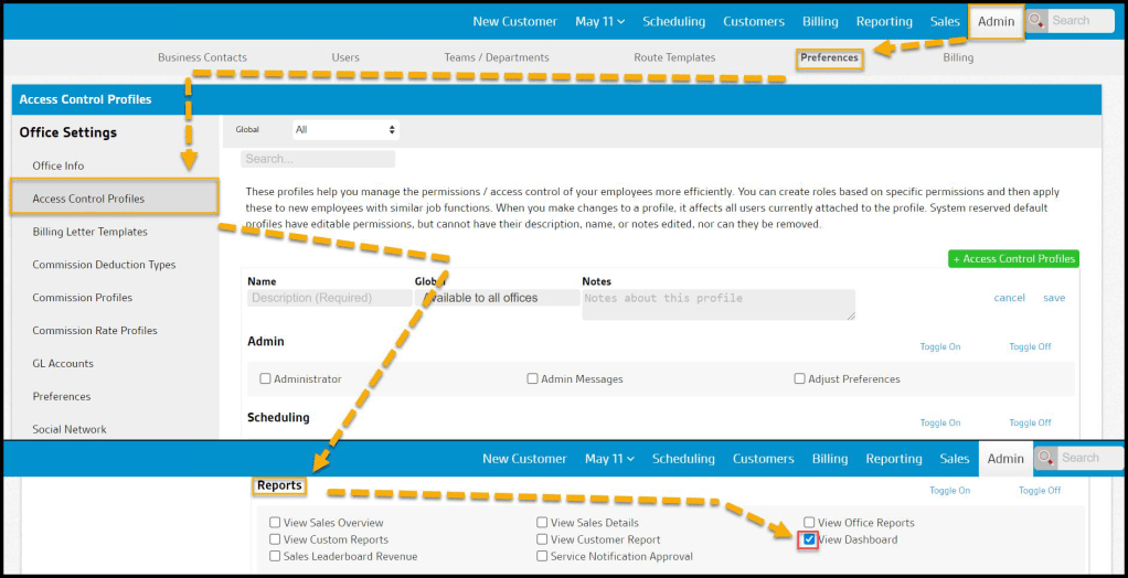 This report excludes potential customer services and services from customers who are pending cancellation except the completed services. Set the user’s Job Pool filters to ensure these reports show the same data.