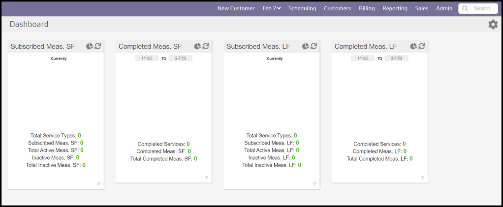 Use the Monthly Services widget to view all customers due within the current month. This widget helps the user focus on the most urgent appointments. There are 4 primary pieces to this widget to help the user estimate how many currently-due customers have been served.