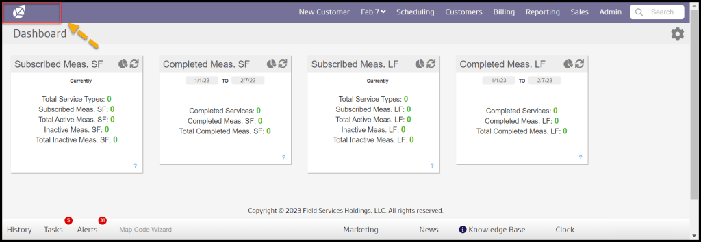 To access the Dashboard, select the logo in the upper left-hand corner of the page.