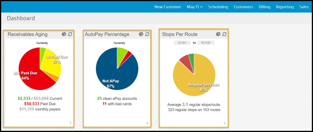 Stops Per Route, AutoPay Percentage, and Receivables Aging