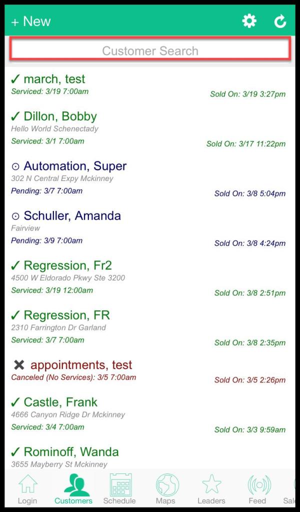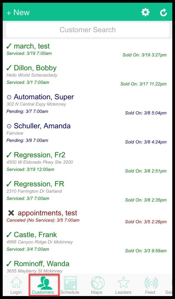 Open the PestRoutes Sales App > Customers.