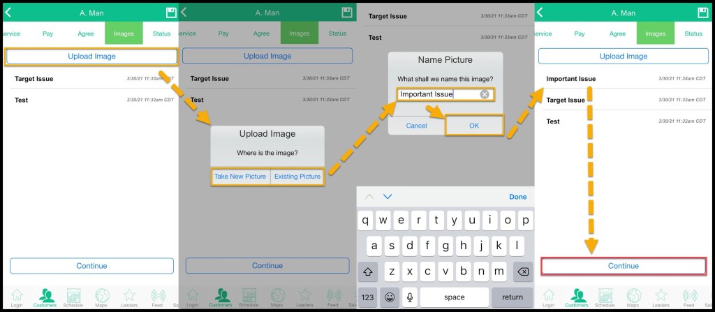 - Upload Image: Used to take a new image with the device’s camera or upload a saved image from the device. Add a name to the image and tap ok to save it.
