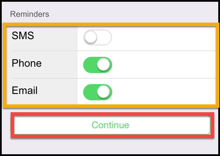 - Phone: Identify if the customer will receive phone call reminders.