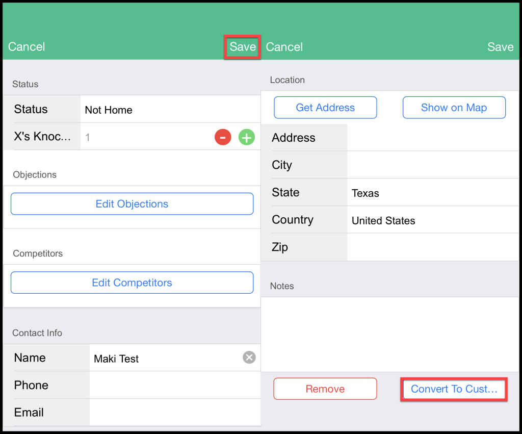 Press Save to save the lead, or press convert to the customer to turn the lead into a customer.