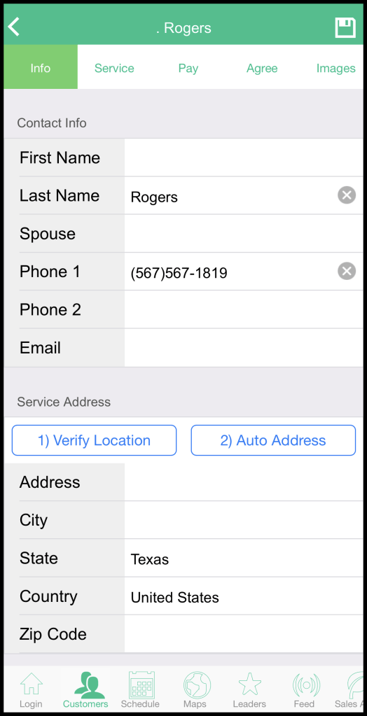 Select the customer’s name on the route to fill out the customer card and generate an agreement. Then select View Customer.