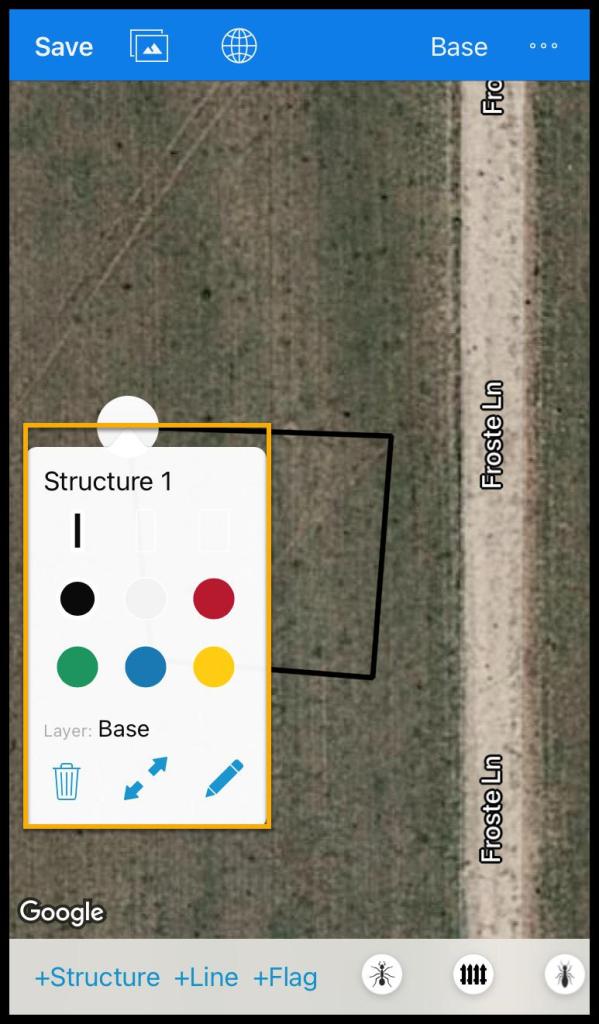 To add a new structure, press + Structure. This will allow a border to be drawn around the customer’s property.