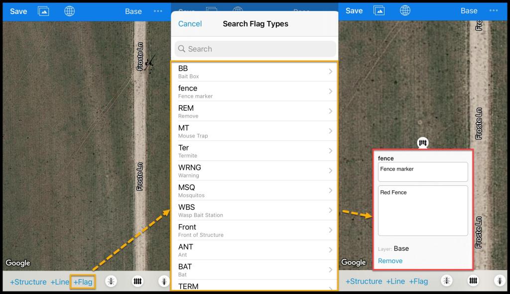 Once “+ Flag” is pressed, there is a list of all the flags that have been created in PestRoutes.