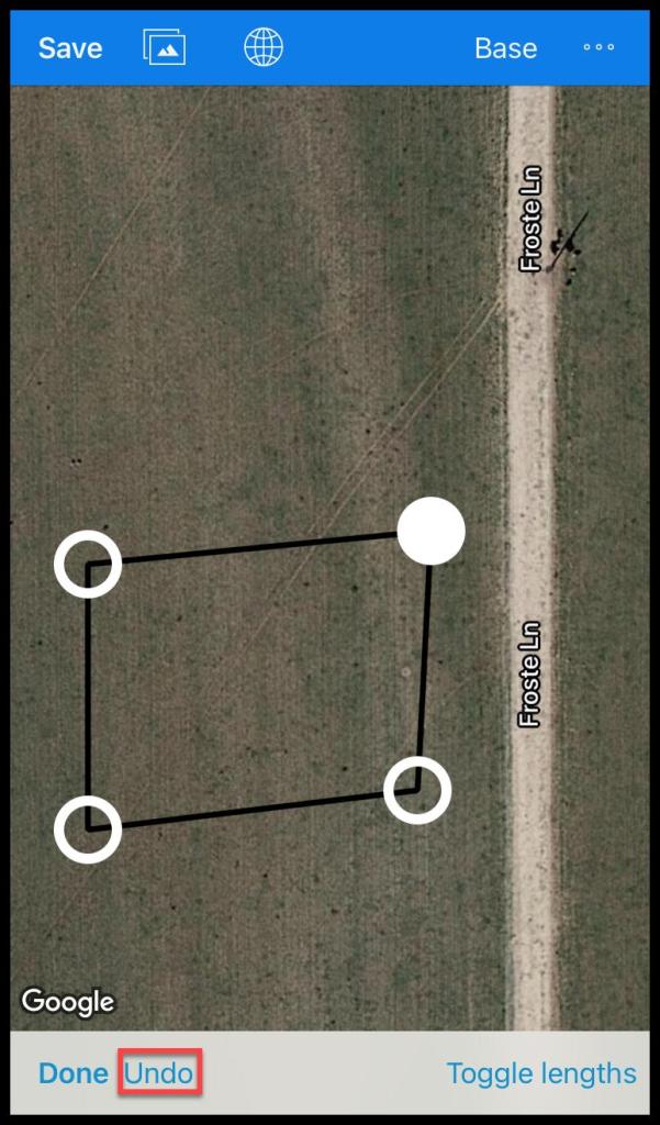 There is also an option to Toggle Lengths. This feature will use Google Maps to determine the actual length of each side of the property. Press this option to toggle the view of the lengths on or off.