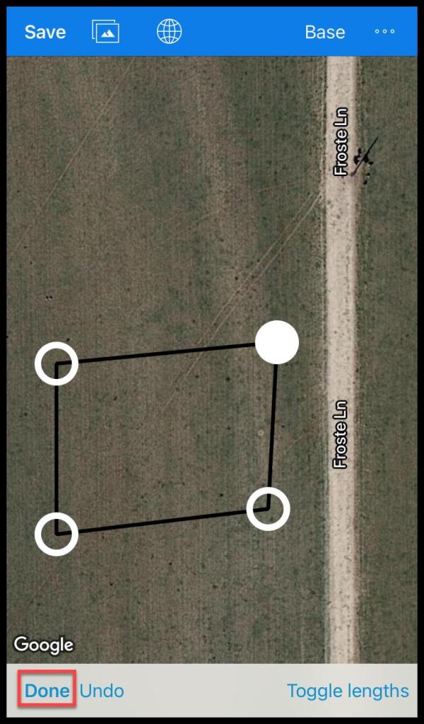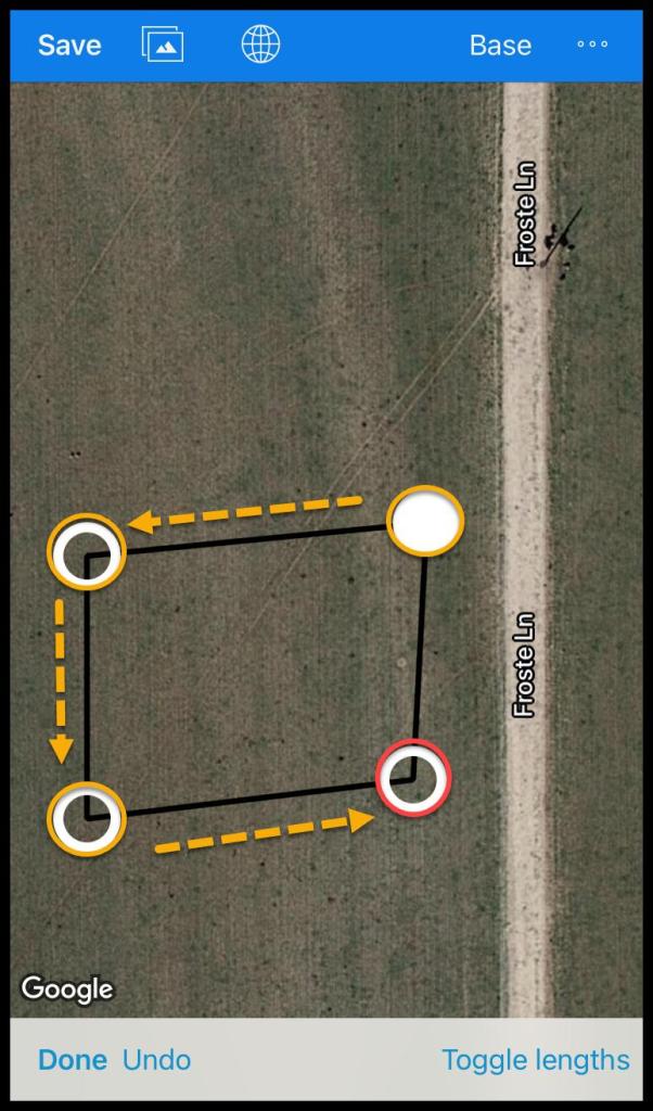 To draw the border, press each corner around the property to create a border around the property. Each point can be tapped and then removed in order to move it.