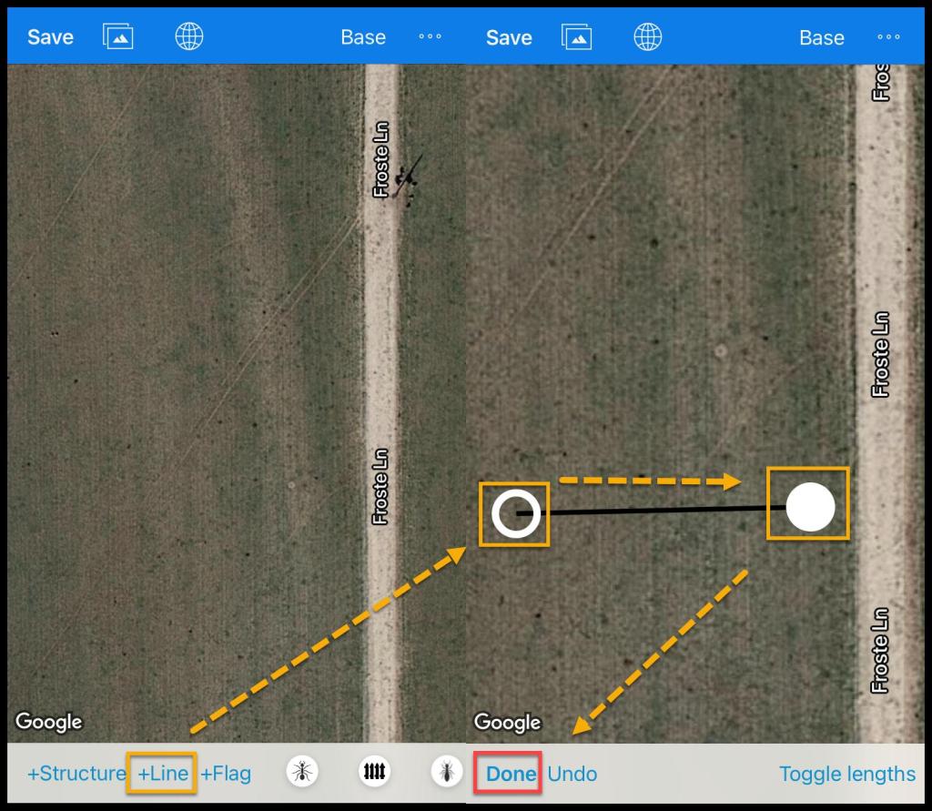 Pressing the globe icon third from the left at the top will apply a grid on the Google Map view. This is helpful when drawing diagrams to ensure everything is accurate.