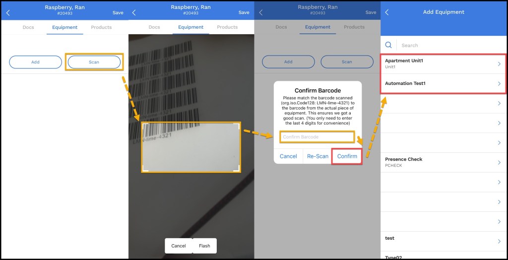 - Verify the last four digits of the barcode to match the equipment with the barcode.