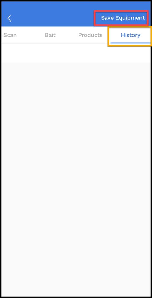 Select Save Equipment in the upper right to save the new barcode, or the user can Select the Scan, Products, or History tab to view and input more information regarding the barcode.