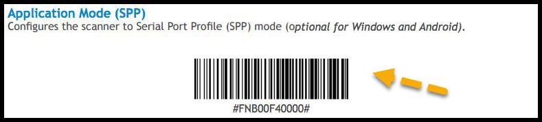 - Put the scanner into SPP mode by scanning the barcode below. The scanner should beep three times after scanning.