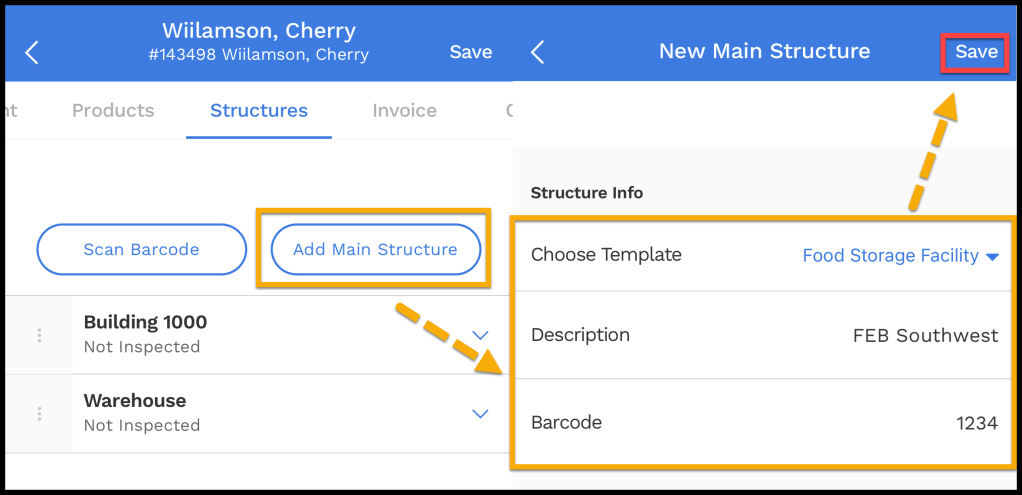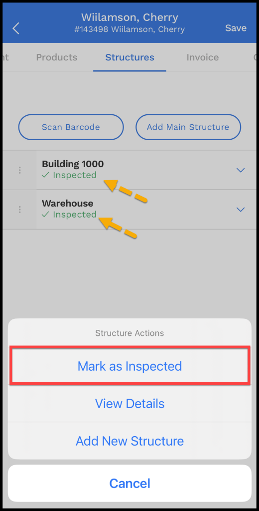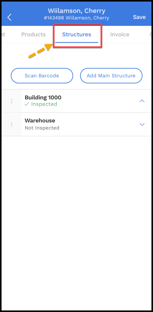 Once the structure is created for the property and the property is scheduled for service, the technician assigned to the route for the service will be able to view the appointment, including the structure details.