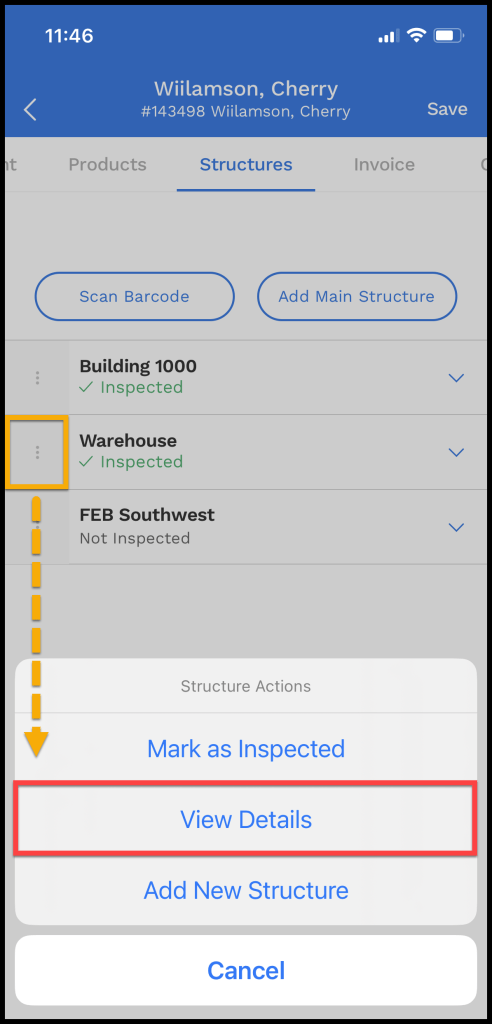 To view the structure details, tap the ellipsis (⋮) next to the structure and press View Details.