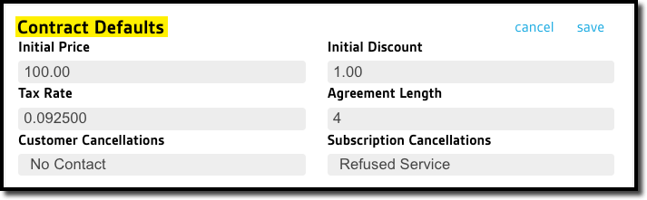 - Subscription Cancellations: Provides a default reason for a Subscription Cancellation (such as Refused Renewal) that will auto-populate if a different selection is not specified.