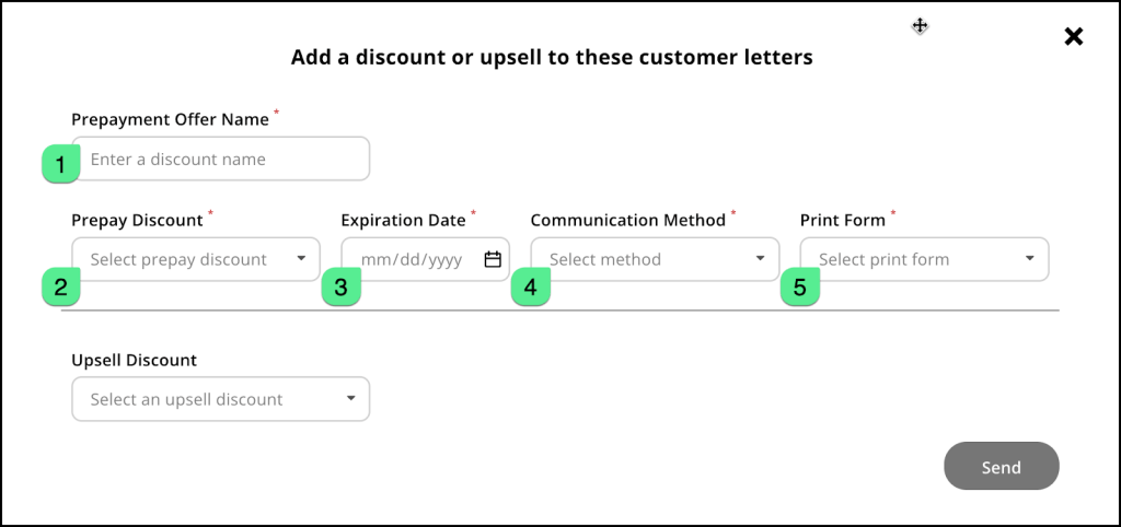 - Prepayment Offer Name – This is where a user adds a discount name that will display on the letter.
