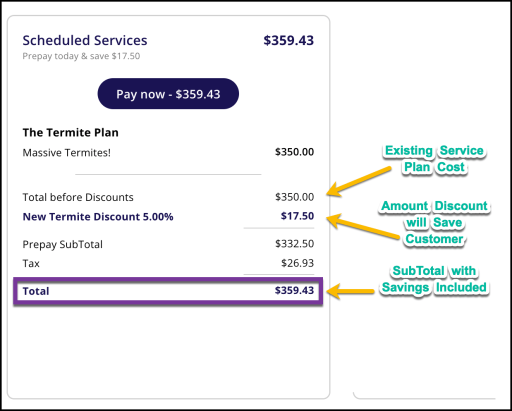 This article will explain how to create Prepayment Discounts and Upsells using the Prepayments feature. FieldRoutes Prepayments, also called the Prepayments Tool, was created so that companies can offer their customers a discount and/ or upsell in exchange for paying for future Service Plan costs upfront.