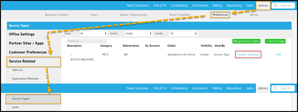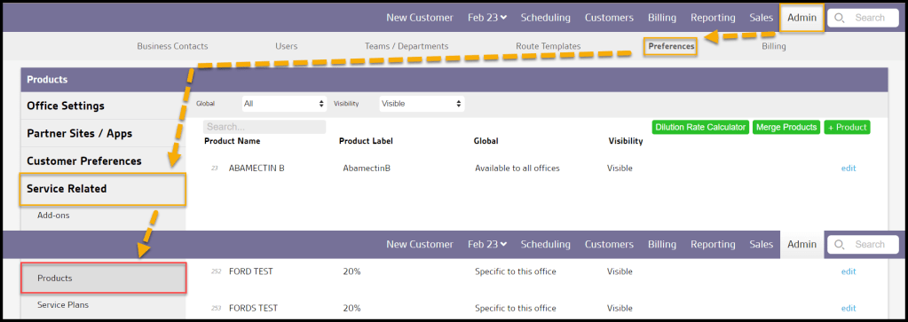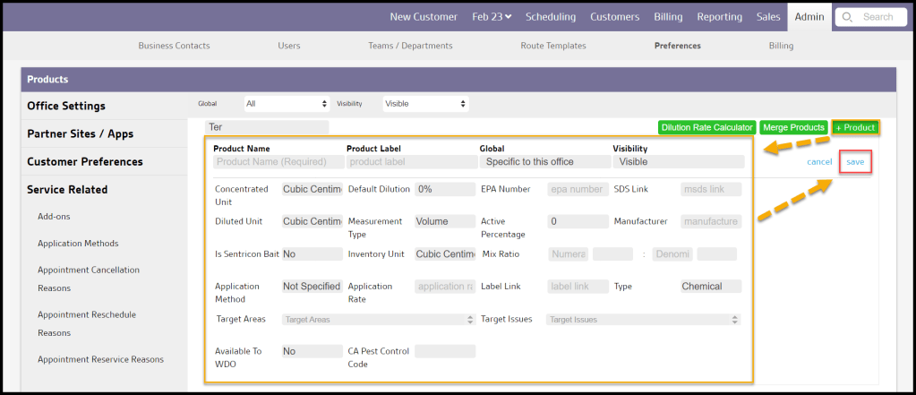 The Products preferences allow users to add and edit chemicals and other products used for services.