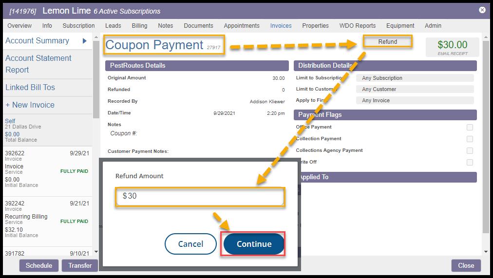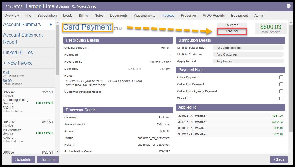 It is important to remember that if the original payment that is Refunded or Reversed was Limited to Customer, Limited to Subscription, or designated for a specific Invoice in the Distribution Details, removing the payment record will result in the restoration of the balance of that specific Customer/Subscription/Invoice.