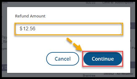 A pop-up window will allow the user to specify a refund amount. The full payment amount is the default.