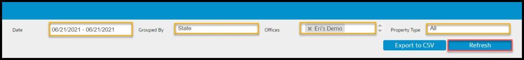 To export a Sales Tax Report as a CSV File, select Export to CSV.