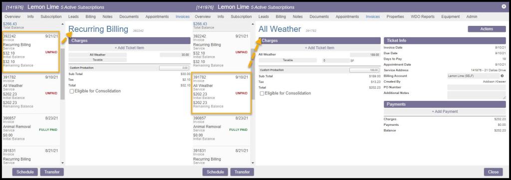 - A $0 invoice is generated after each completed service, while a separate invoice for the recurring ticket price is generated after each recurring billing cycle.