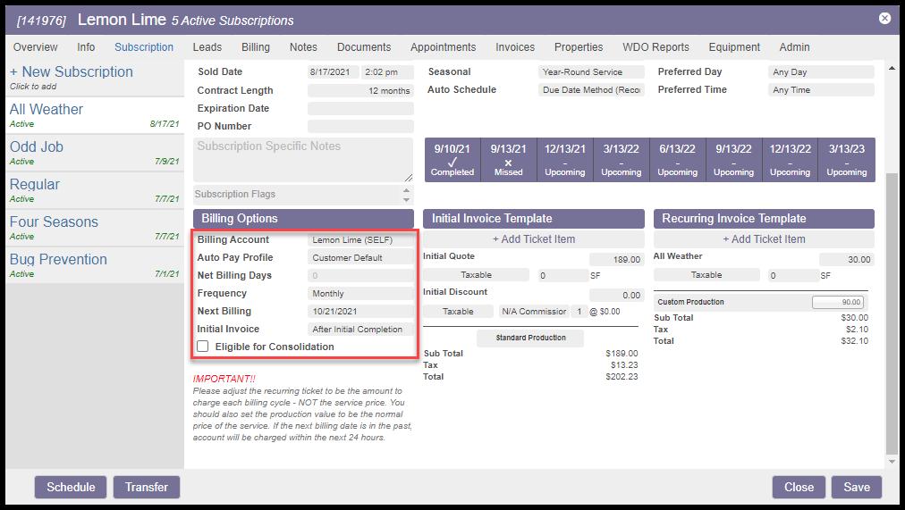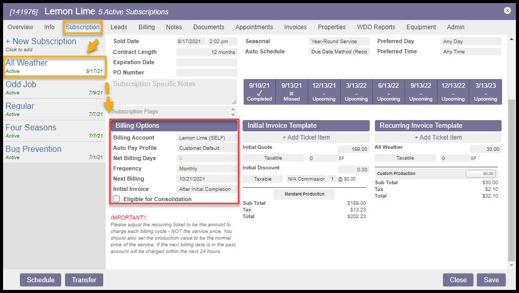 This feature is especially beneficial if the user has customers that want to pay for their services each month while receiving services on a different frequency. Still, the user can choose any type of billing frequency to meet the customer’s needs and the company.