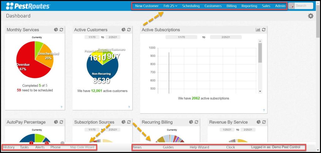 - Billing: View the AutoPay customers, Accounts Receivable, Accounts with Credits, Collections, Payment History, and Payment Batches report.