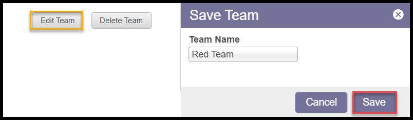 To save a team or department, select Edit Team or Edit Department and select Save.