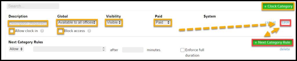 Select save or add more Time Clock Category rules by selecting +Next Category Rule.