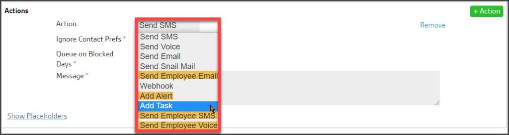 - Add Task: Adds a Task for an employee to take action regarding the Customer Status change.
