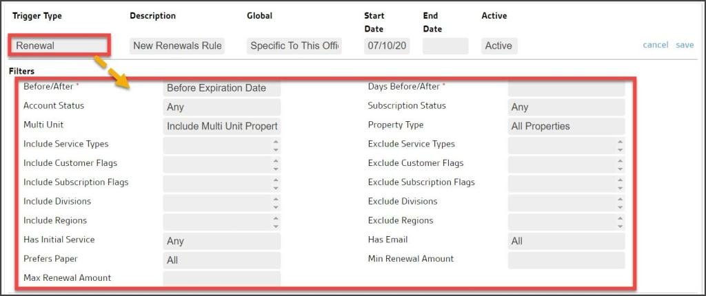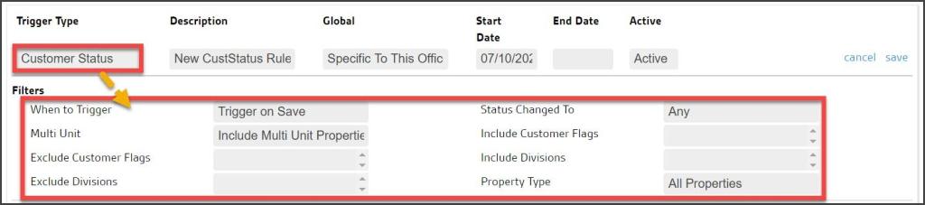 - Active: Trigger Rules are set to Active by default but may be toggled to Inactive to take them out of service without deleting or changing any settings.